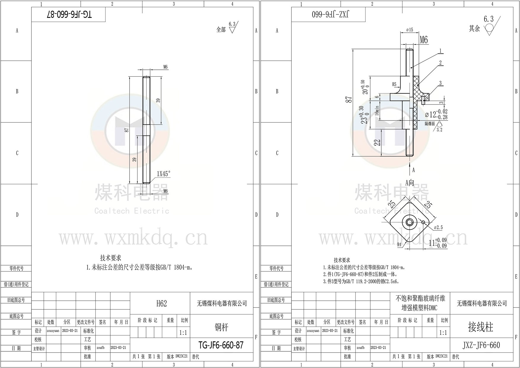 ◆ 接線螺桿:M6(H62黃銅),額定電流大?。骸?1.5A;