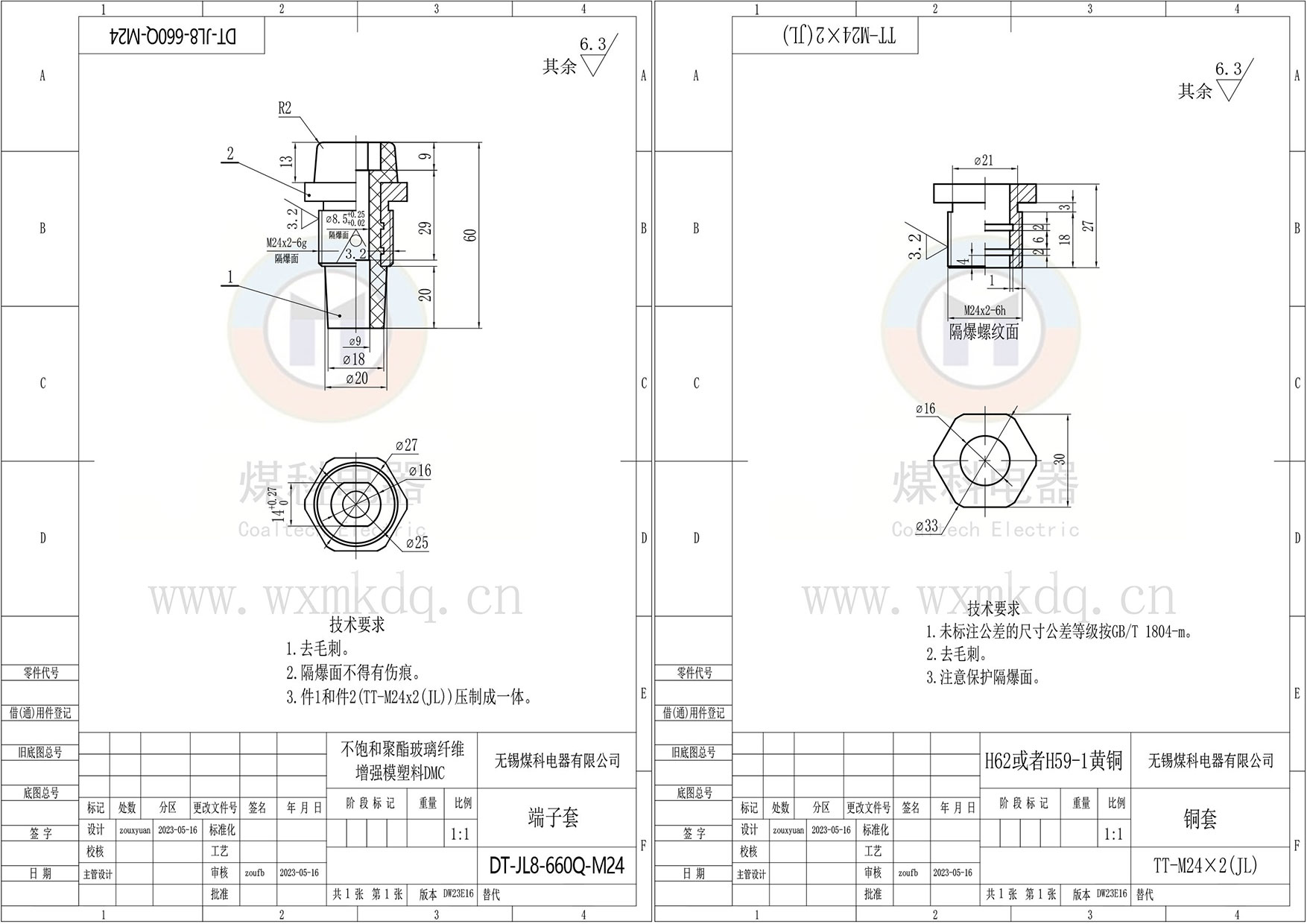 ◆ 安裝尺寸:M24x2 隔爆螺紋;